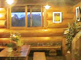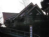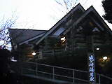 帰りも当然二十分の歩き。 日も暮れかかり、駅にはライトが(左)。 待合室はこういう雰囲気で(右)、 ちょっと気に入った。 |