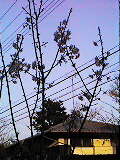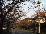 仕方がないので、歩きましたよ、ええ。 四月の上旬あたりに行けば、 道沿いの桜並木が満開で、 きれいなんだろうけど、 このときはまだ三月下旬。 (すいません、そんな時期の旅行記を 九月にアップしてるんです) 咲いていたのは、 右の写真に撮った一本の枝だけだった。 |