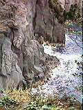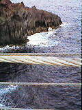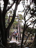 全長約五十メートルの吊り橋、 半四郎落とし(左)と、 その上からながめた風景(右)。 |