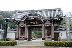 西門を入ると、右手に六地蔵堂。六角柱の各面に、地獄道、餓鬼道、畜生道など、 六道それぞれに対応した、六種類のお地蔵様が彫られている。