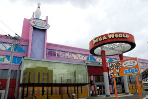 2階のフードコートで、遅い朝ごはん。スガキヤの特製ラーメン。 テラスウォークのテラスは、このフードコートにあるが、 雨が降りこんでいたので誰も出ていない。 ちょっと出てみたが、目の前の国道が見えるだけだったので、 景色の写真は撮らなかった。 フードコートの隣に、namcoテラスウォーク一宮店があった。 この手のロケーションにしては広くない方だが、 それでもプライズ、プリクラ、キッズ向け筐体、メダル、のりものがある。 「あそびパーク」というプレイスペースでは、 固まる砂「ホワイトサンドプラス」を使った砂遊びができる。 「太鼓の達人」をプレイ。 「ハートスランプ二人ぼっち」が、ふつうモードでもけっこう難しい。 でも何とかクリア。 2曲目「さちさちにしてあげる♪」もクリアした。 (ゲーム路銀 ¥3,670-¥100+¥200=¥3,770) 次の店へ向かおう。11時32分、テラスウォークを出て、 さっきテラスから見えた国道22号(名岐バイパス)を南下。 雨は弱くなったがまだ降っている。 大型ロードサイド店舗が建ち並ぶバイパスの風景。