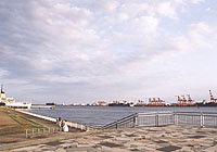 テレコムセンター21階の展望台へ(¥500)。日曜だが人が少ない、穴場的スポットだ。 人が少なすぎて何となく不安になるほどだが、ここから見える景色は素晴らしい。 南のコンテナ群や、対岸の羽田空港から飛行機が飛び立つ様子。風力発電用の風車。