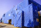 展示してある大型機械のわきを通って、「ウッドピアいわき」へ向かいます。